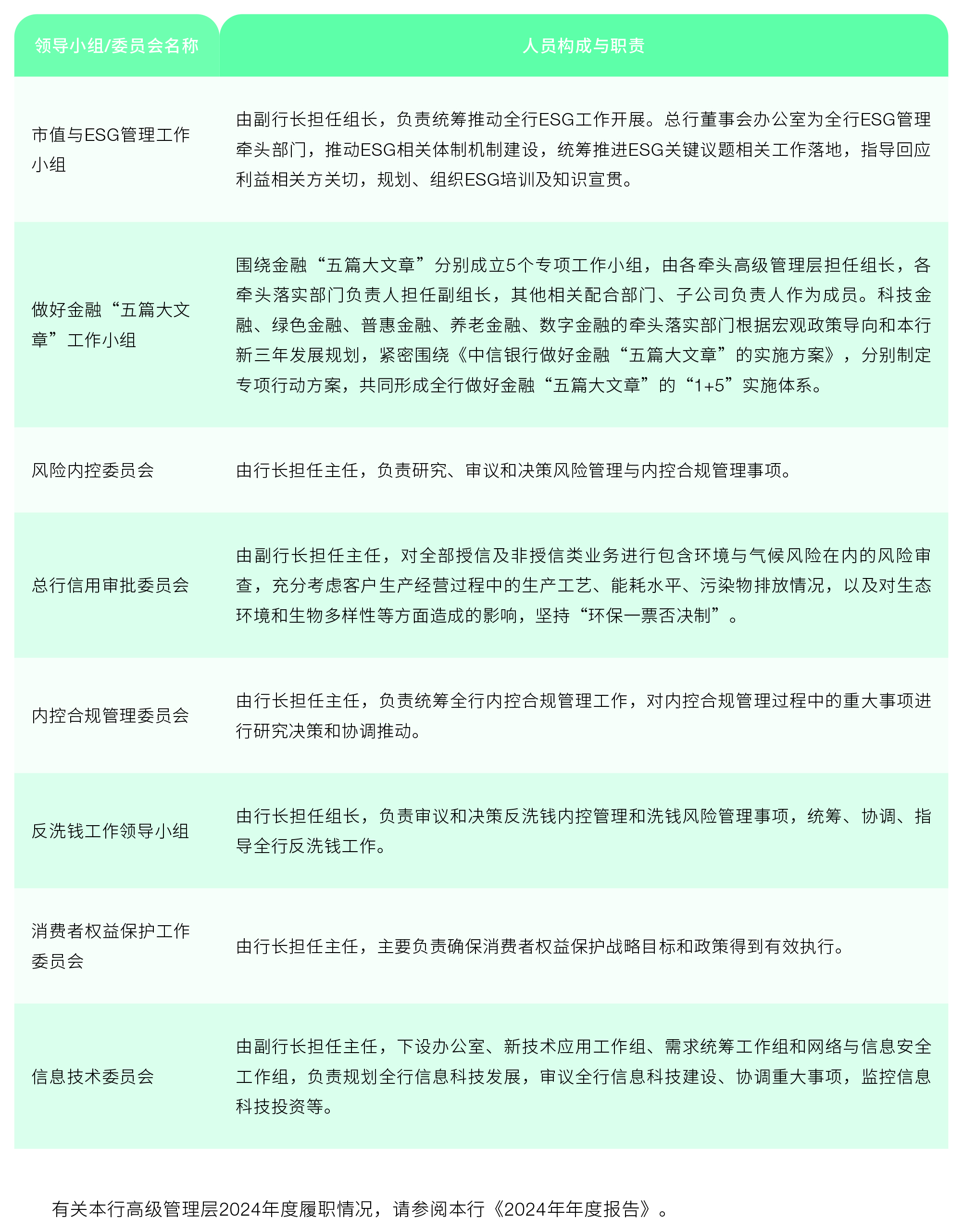 本行建立并持續(xù)完善包括董事會(huì)、監(jiān)事會(huì)、高級管理層和工作層在內(nèi)的可持續(xù)發(fā)展治理架構(gòu),形成“自上而下、創(chuàng)新驅(qū)動(dòng)、相互促進(jìn)、協(xié)同運(yùn)轉(zhuǎn)”的可持續(xù)發(fā)展管理體系。
