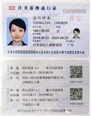 (內(nèi)地居民)往來港澳通行證及簽注(本式)